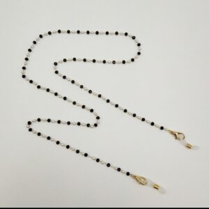 Vivanua Gold Plated Sunglasses Chain With Black Beads And Pearls.