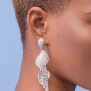 Double Oval Shape Earrings With Clear Cubic Zirconia.