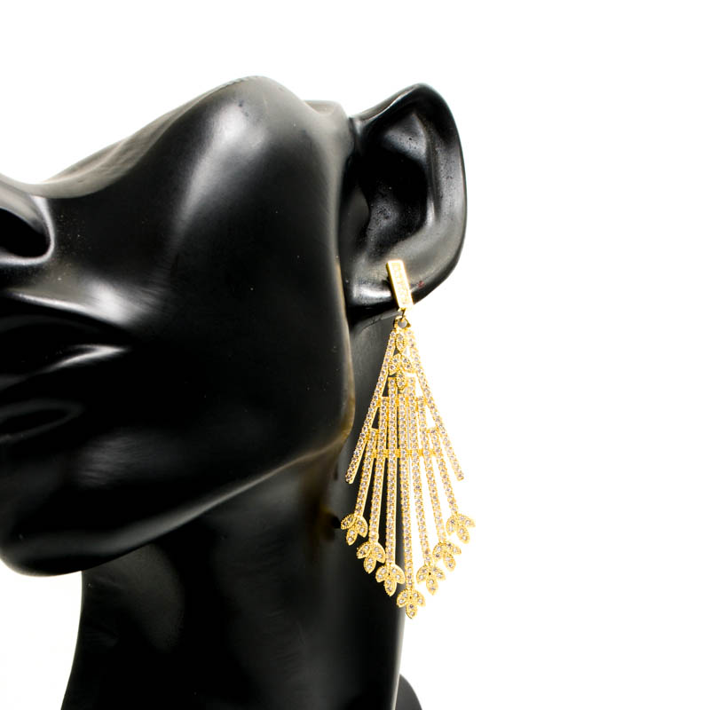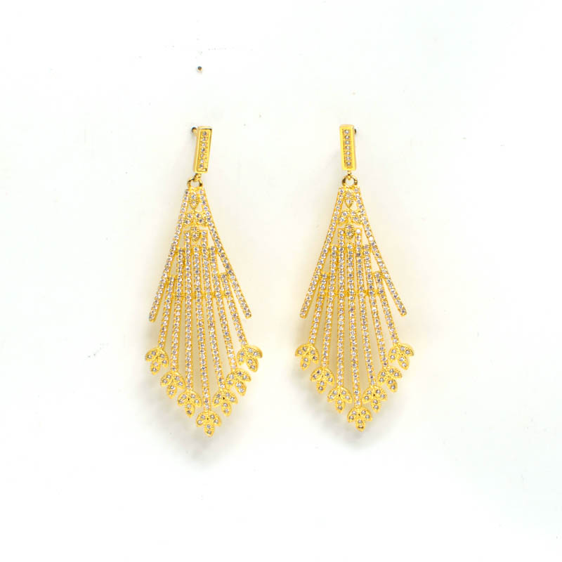 Arrow Style Earrings With Clear Cubic Zirconia. Gold Plated.