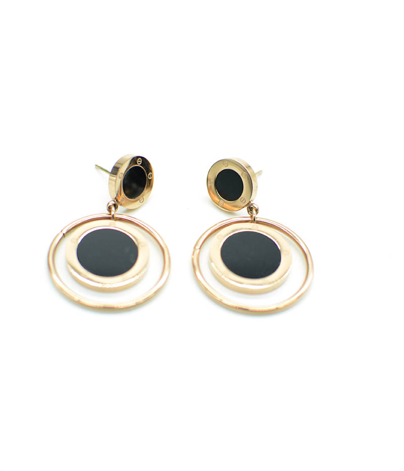 Black Double Disc Titanium Steel Earrings. Rose Gold Plated.