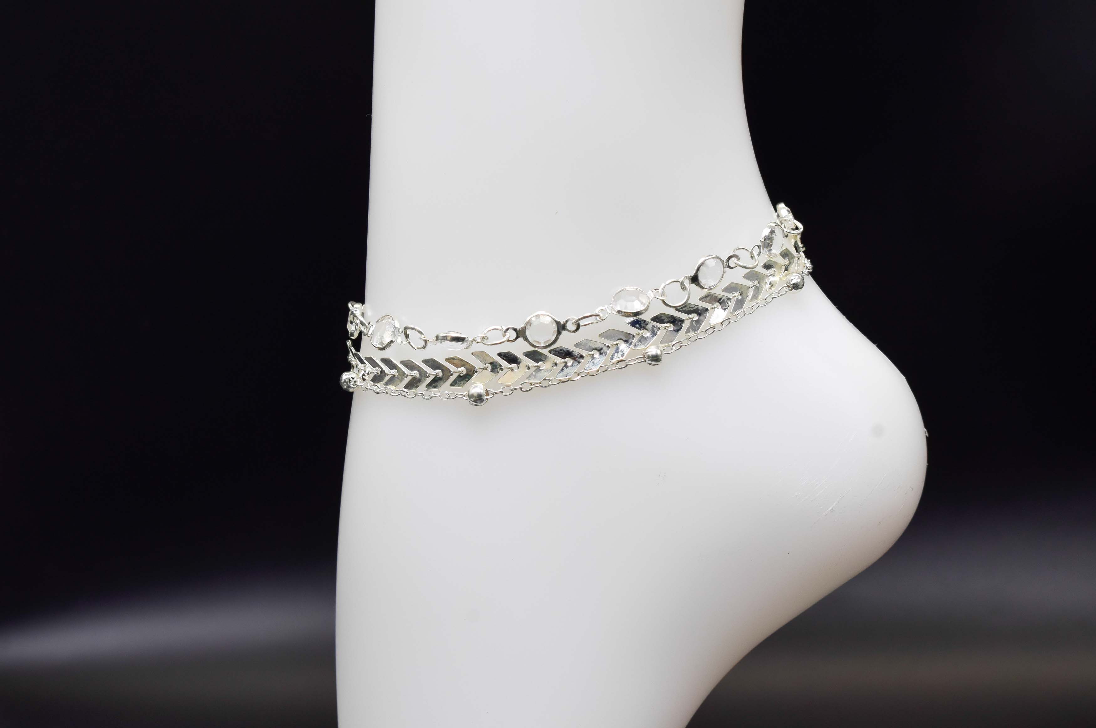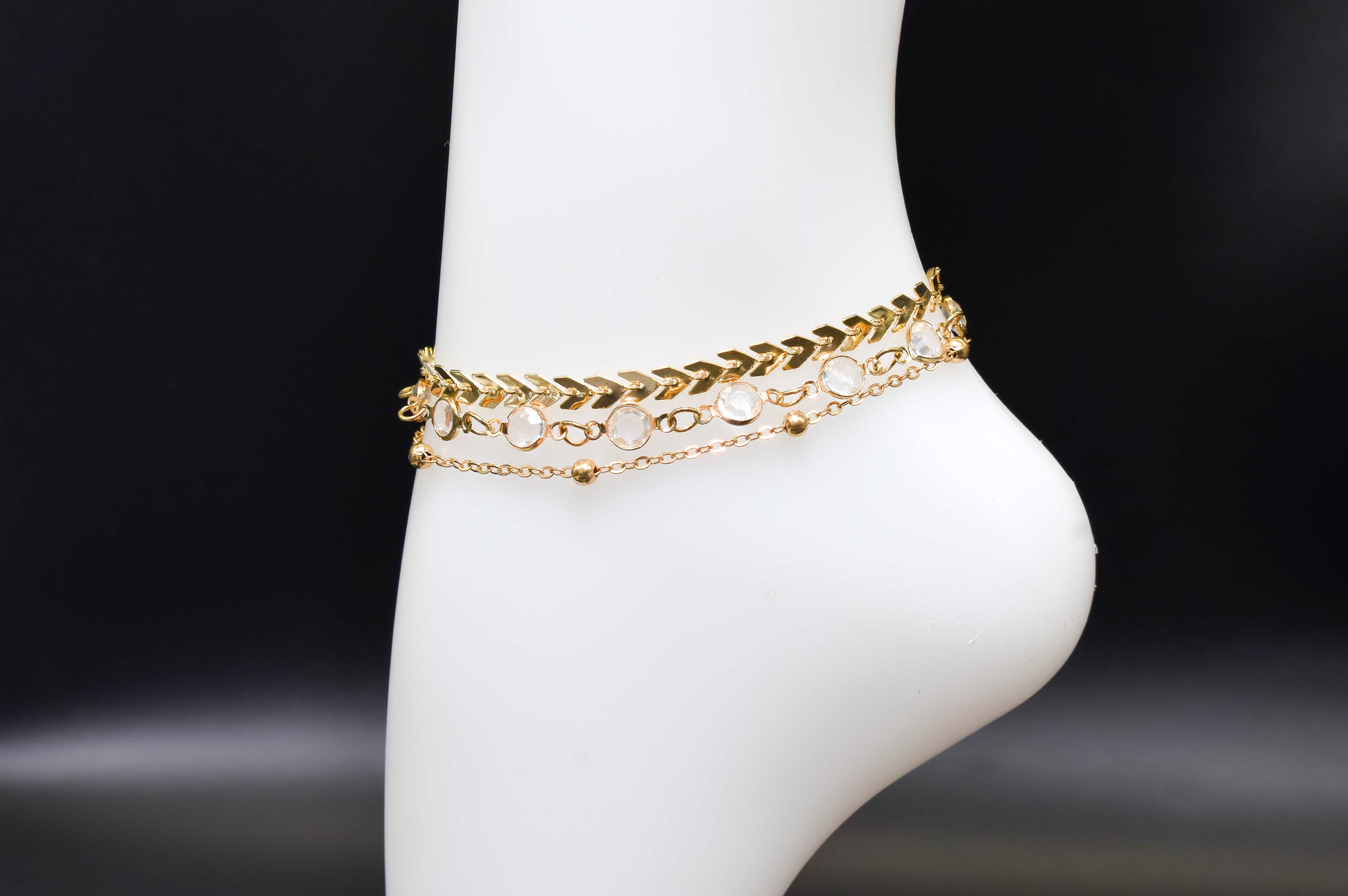 Chevron Triple Layered Anklet With Clear Crystals. Adjustable.