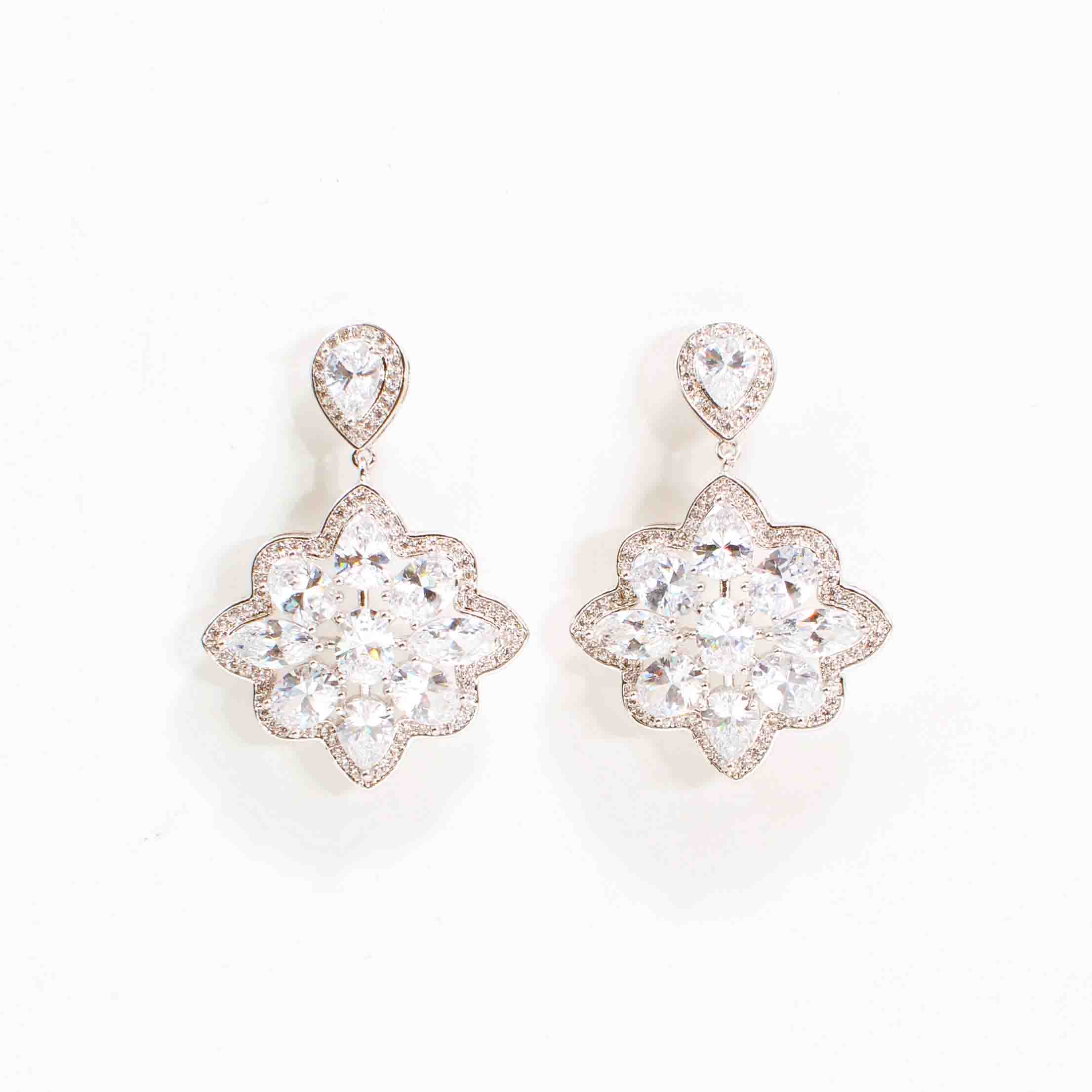 Clear Cubic Zirconia Earrings. Silver Plated.