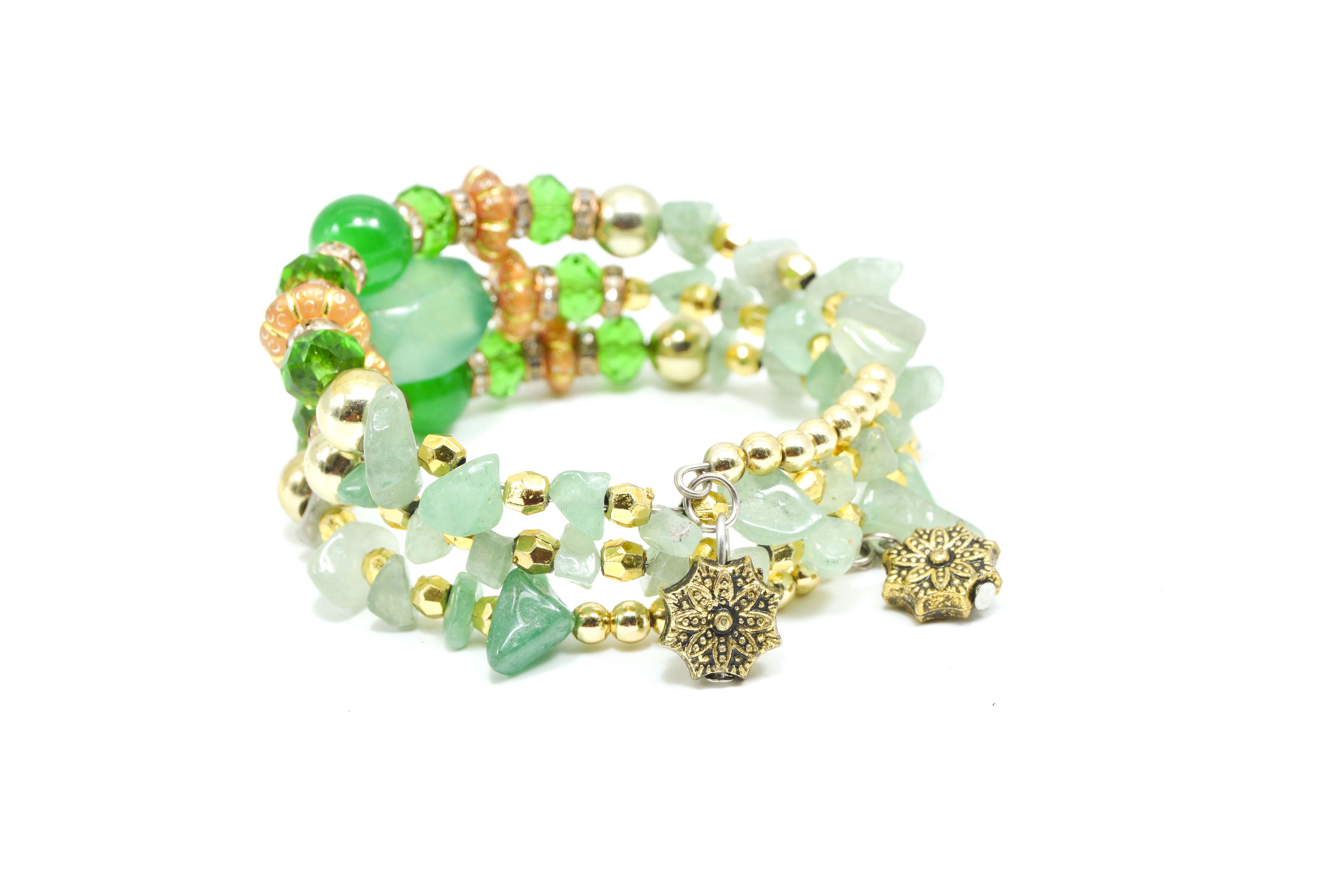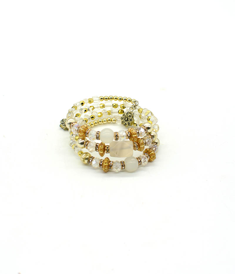 Expandable Cream Multi Beaded Bangle. One Size Fits All.
