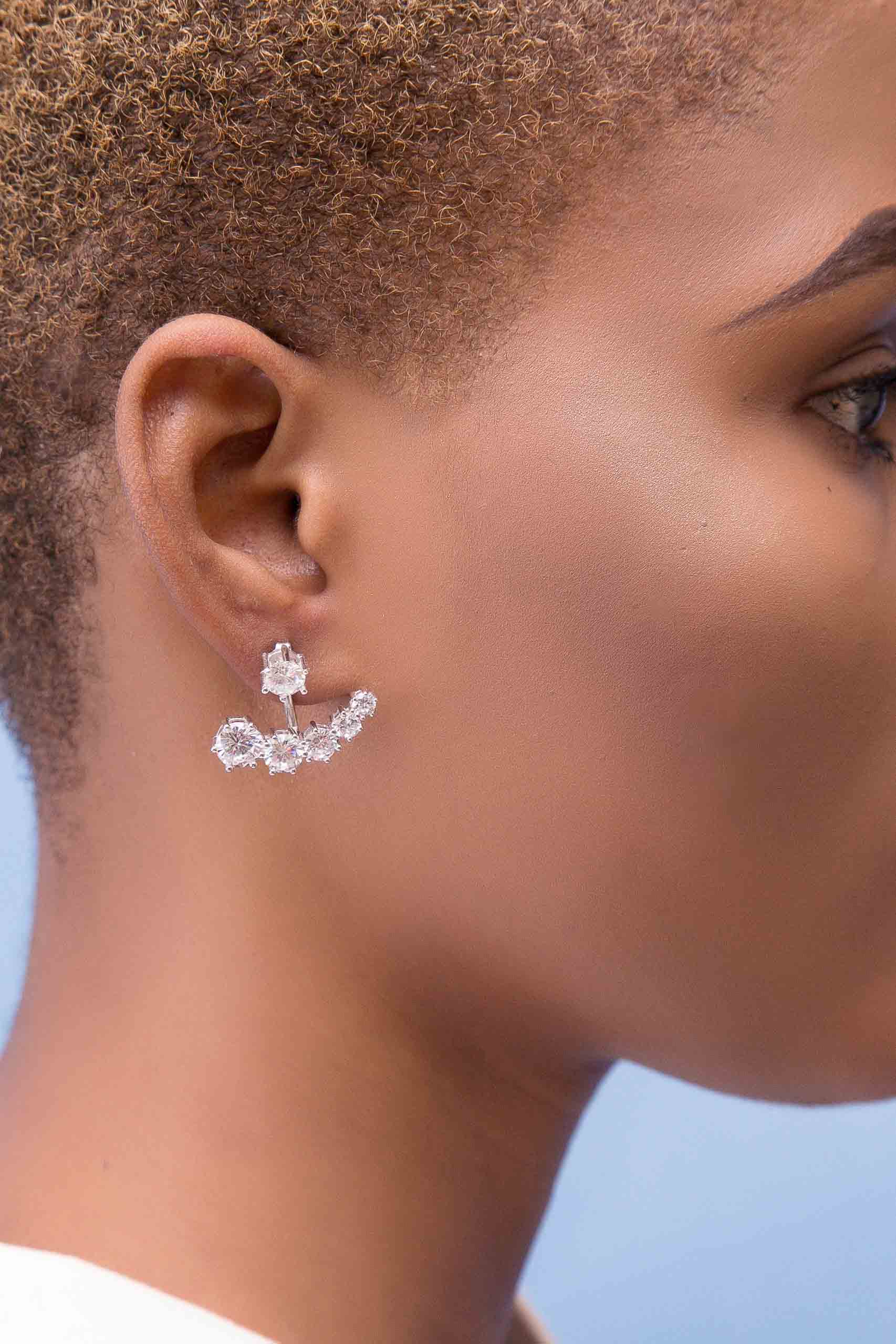 Earring Jackets With Clear Cubic Zirconia. Silver Plated.