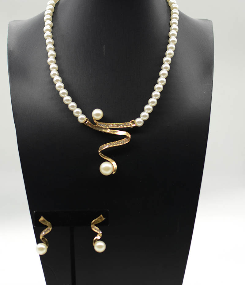 Gold Plated Faux Pearl Necklace and Matching Earrings. Gold Plated.