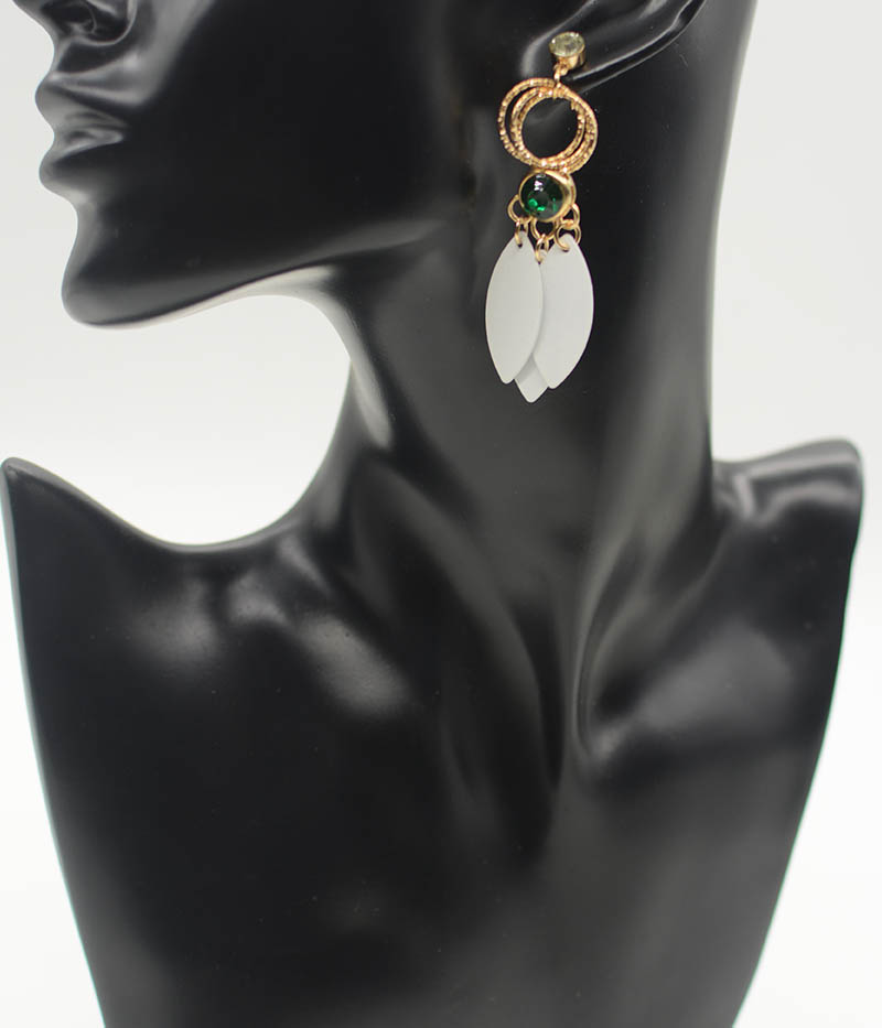 Gold plated Circle Earrings with Green Middle Stone and Faux Shells.