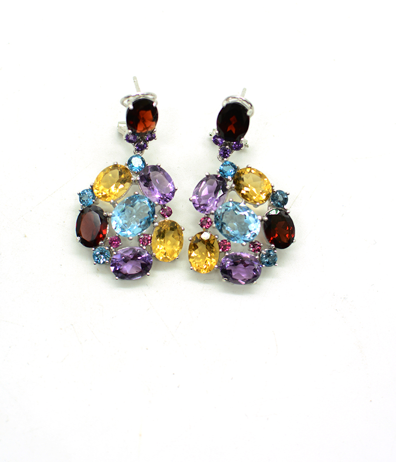 Irregular Shaped Mullti Coloured Gemstone Earrings. Silver.