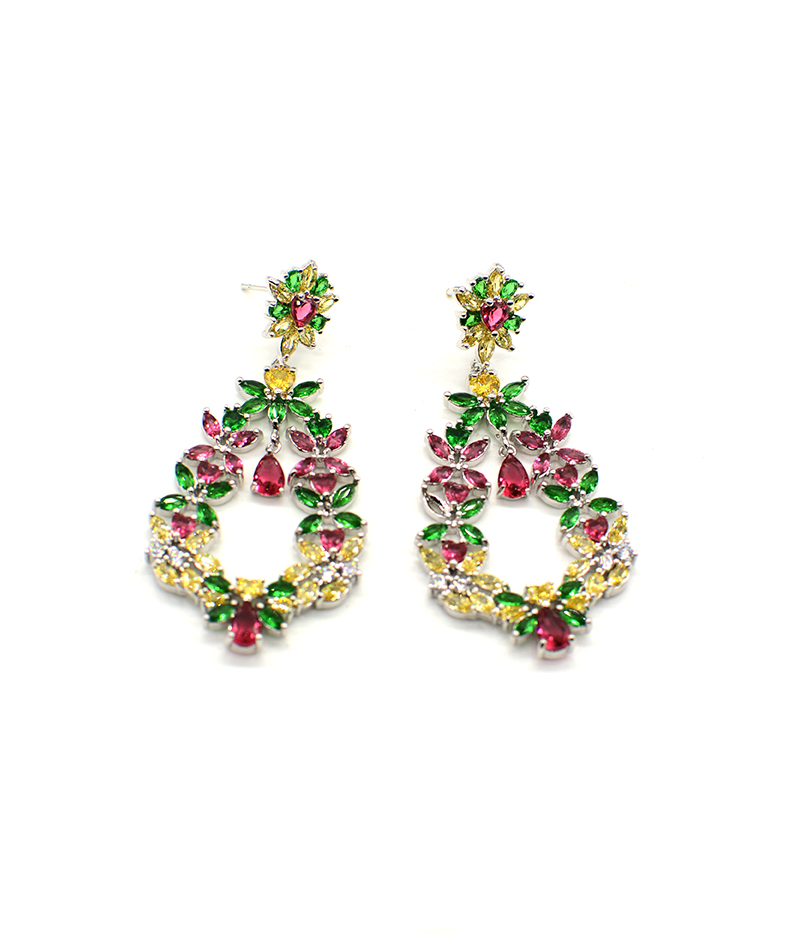 Multi Coloured Cubic Zirconia Earrings. Silver Plated.