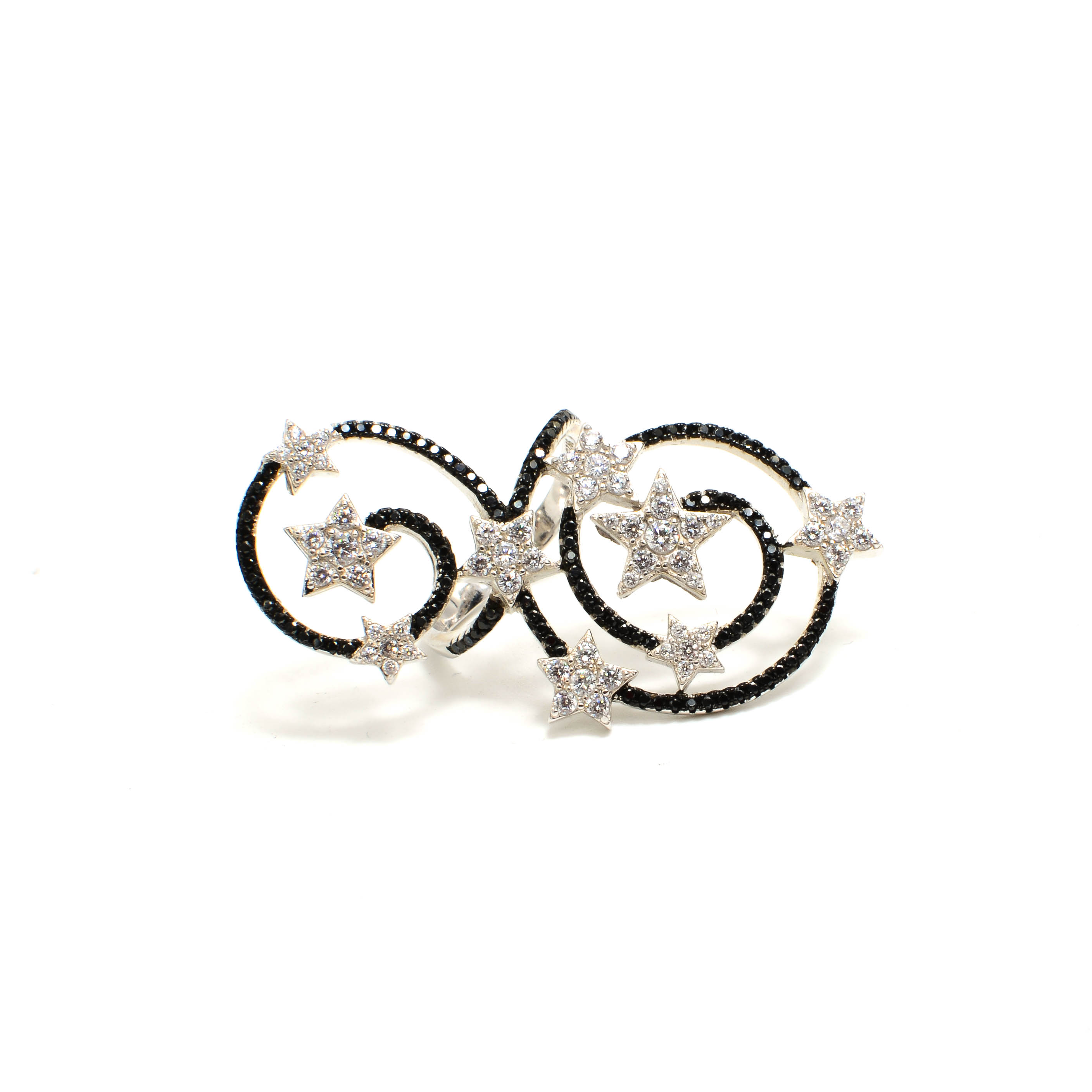 Silver multi stars black and white cubic zirconia ring