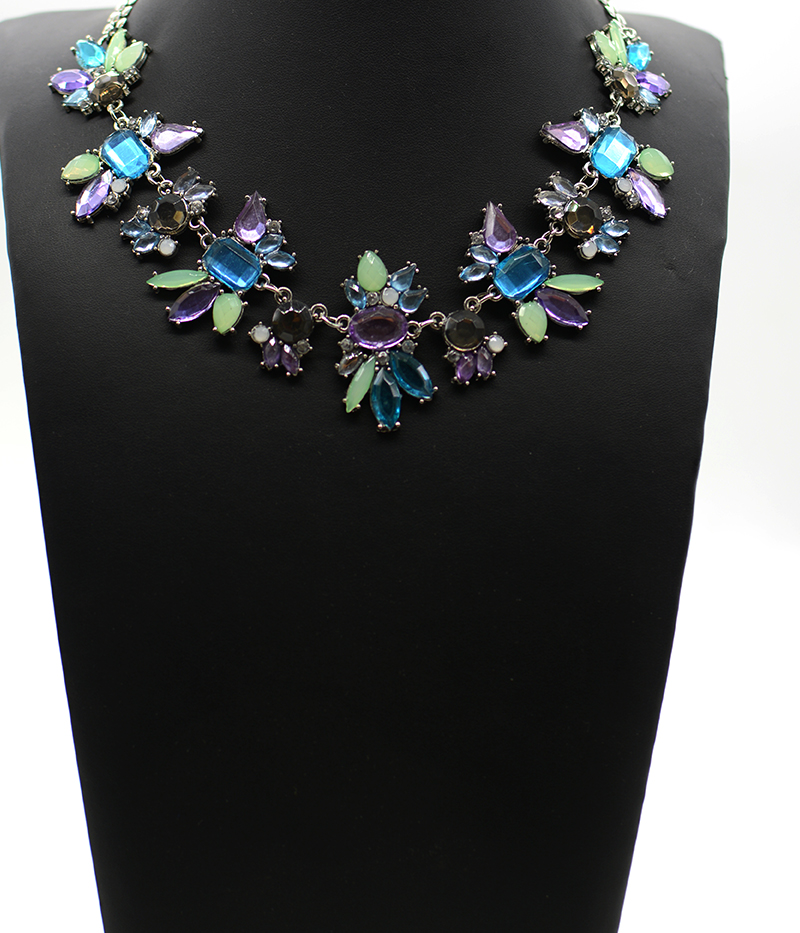 Pastel Lilac, Green and Blue Coloured Crystal Necklace.
