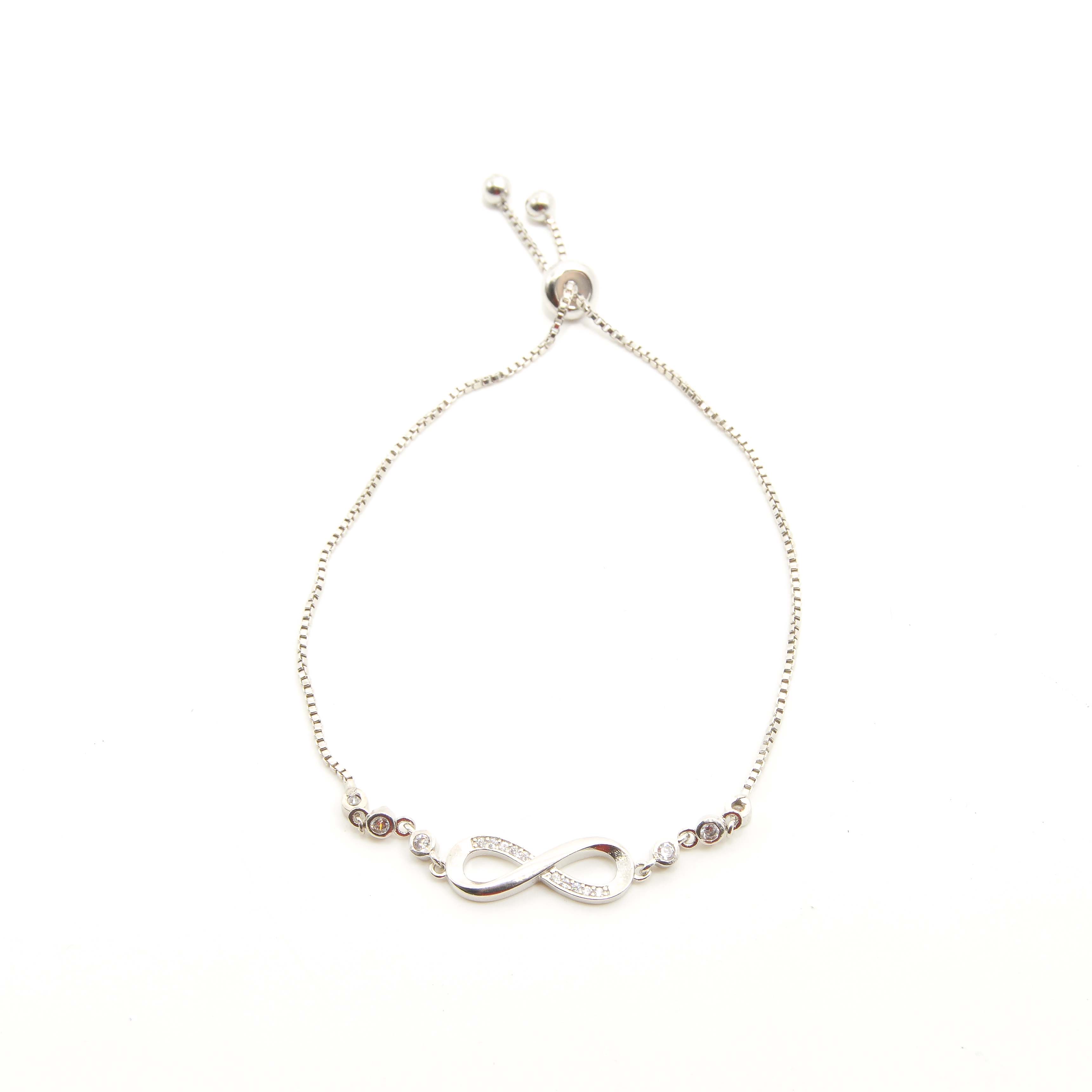 Portable Hand Chain Designed With Clear Cubic Zirconia. Silver Plated.
