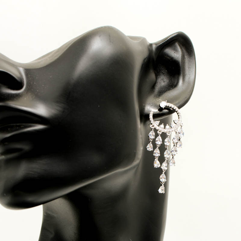 Rain Drop Clear Cubic Zirconia Earrings. Silver Plated.