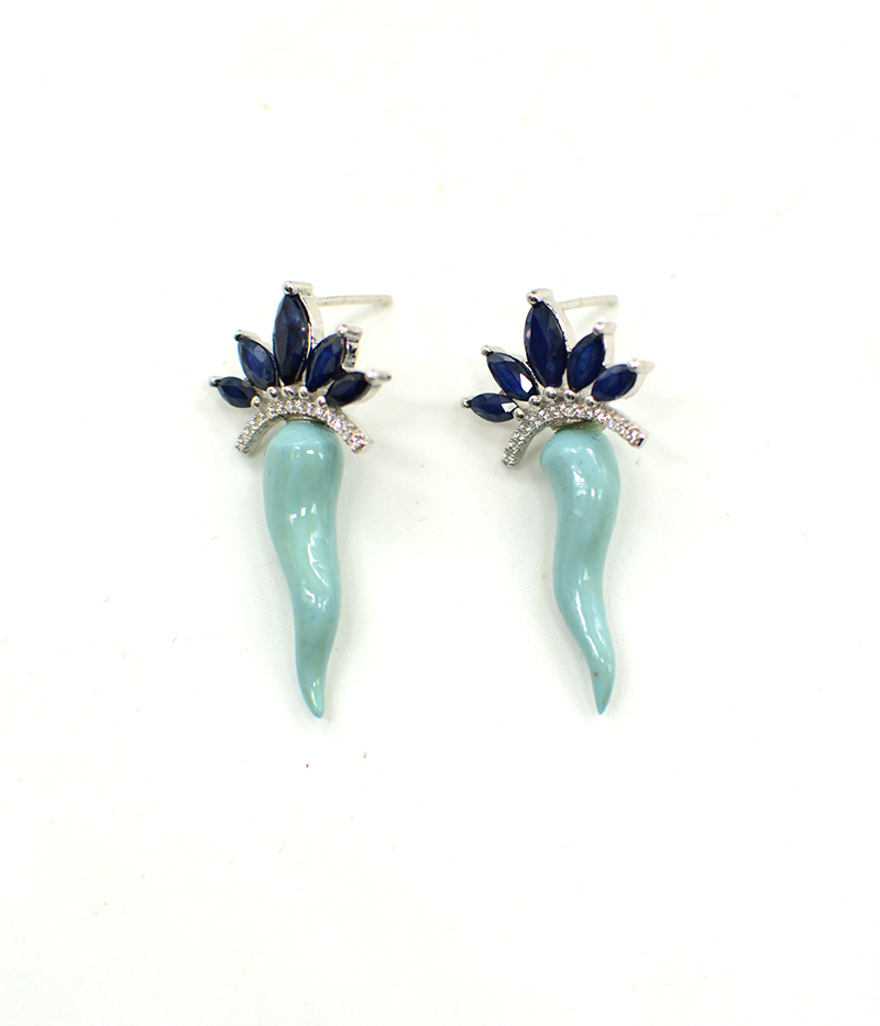 Small Turquoise, Blue Sapphire, Cubic Zirconia Earrings. Silver.