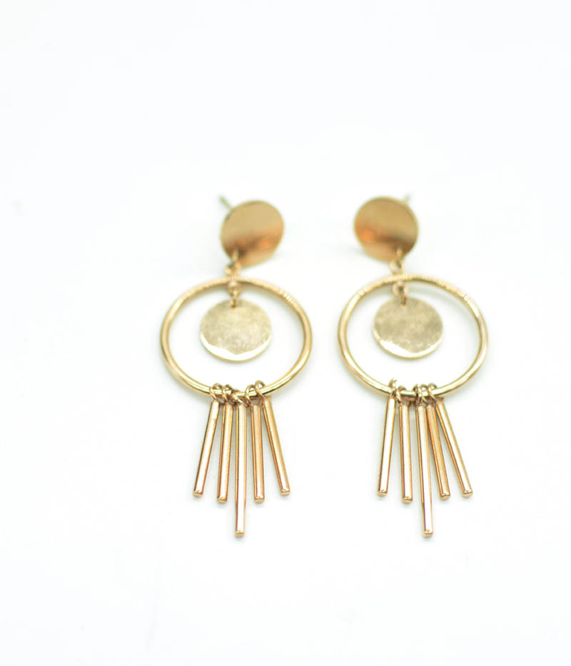 Titanium Steel Circle Earrings with Steel Tassels. Rose Gold Plated.