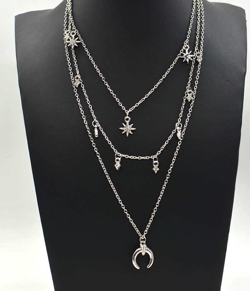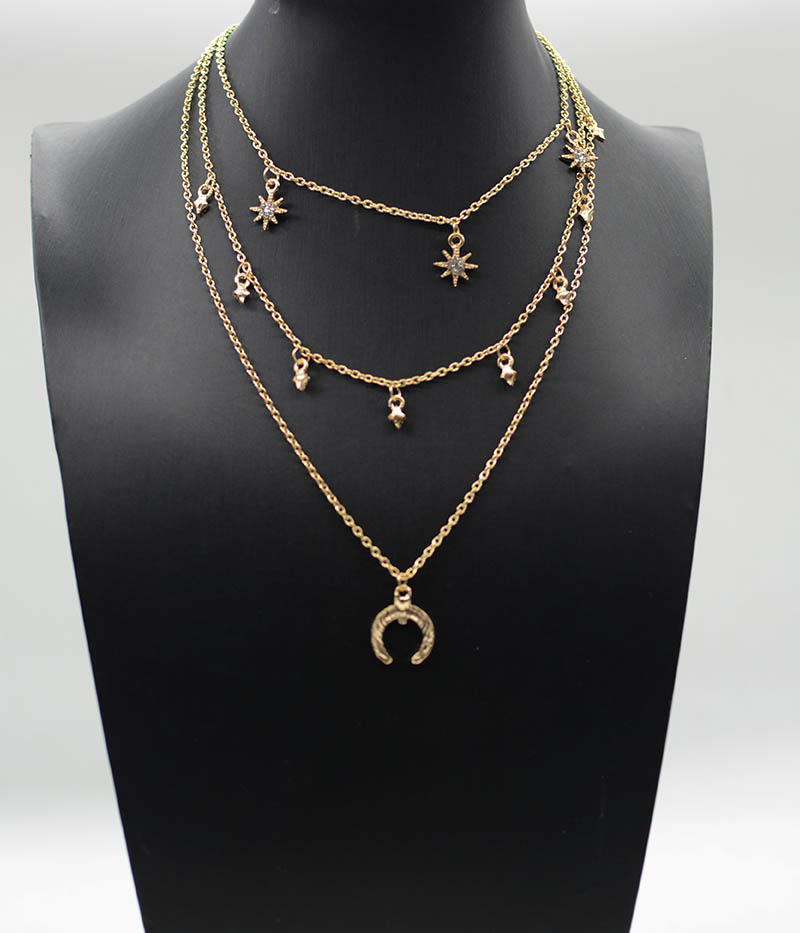 Ultra Trendy 3 Layered Gold Plated Charms Necklace with Crystals.