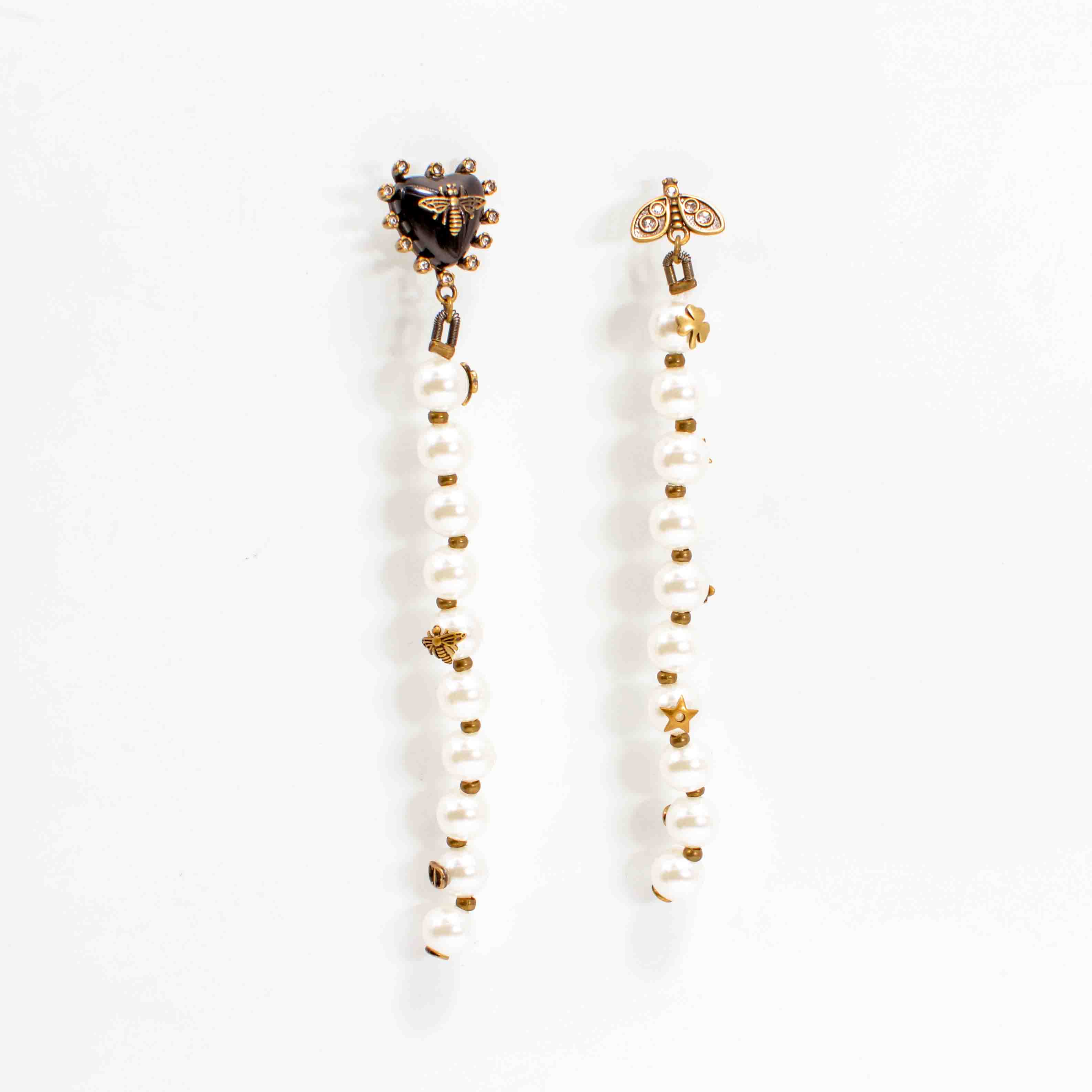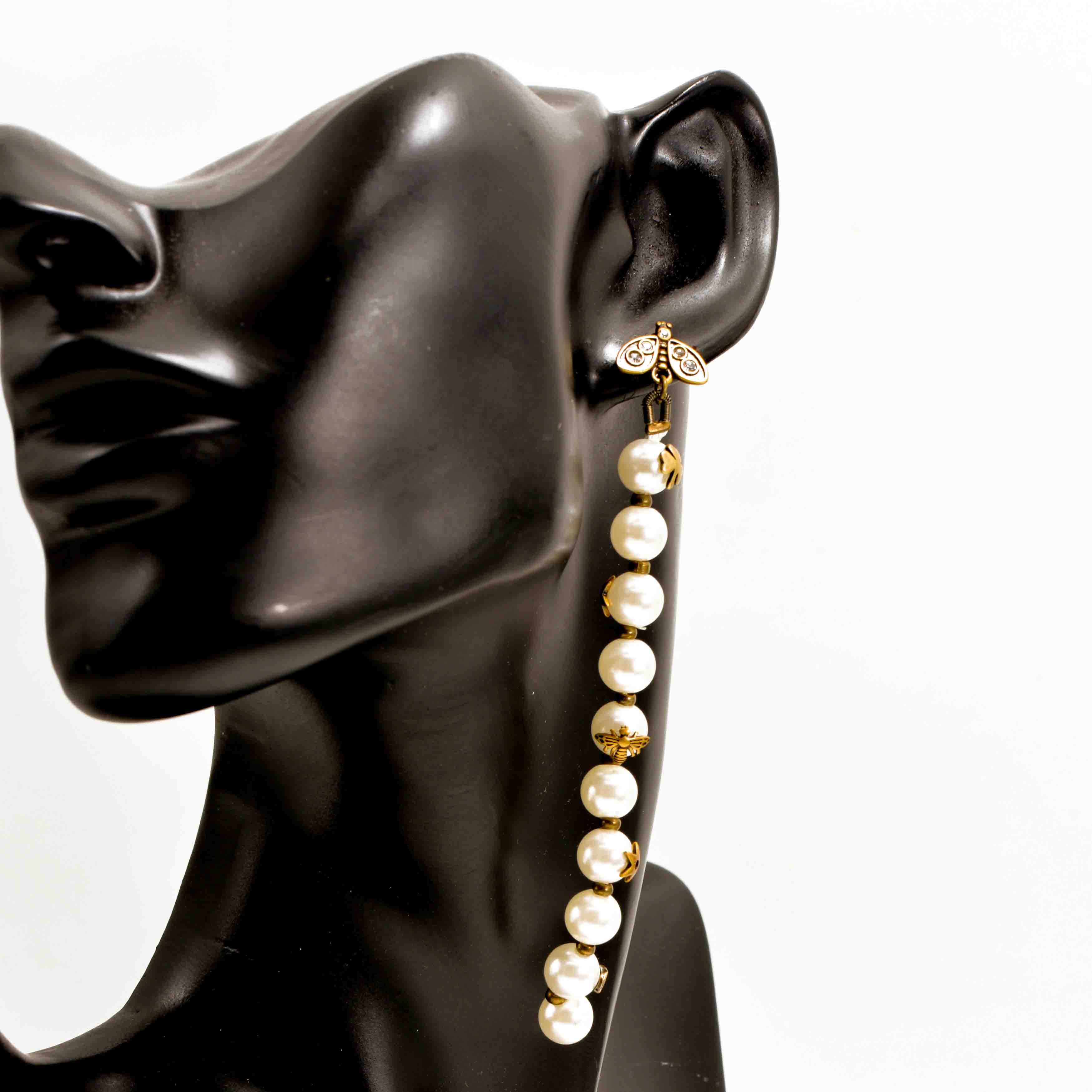 MisMatched Very Long Butterfly Design Pearl Earrings. Gold Plated. Black enamel.
